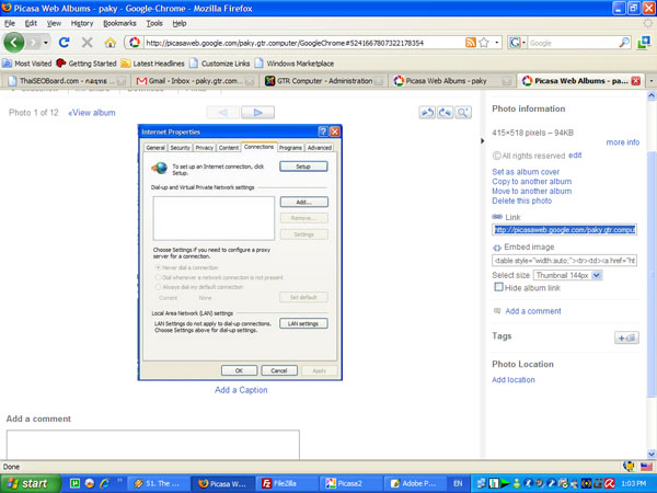 เก็บรูปไว้ที่ Picasa 1GB แบบฟรี หรือลงทุน upgrade plan ก็ได้ครับ 5 US/ต่อปี 20GB