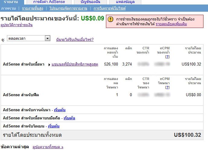 ยินดีด้วยนะครับ ---------------------------- ขั้นตอนการกรอกข้อมูลภาษี เมื่อรายได้ครบ $10 . . . ให้ยืนยันข้อมูลทางภาษี... - คลิกที่ หัวข้อ My Account - คลิกหัวข้อย่อย Tax Information และให้ทำเครื่องหมายที่วงกลม เลือก No และ กดปุ่ม Continue - หน้าถัดมา Do you have U.S. Activities related to you participation in AdSense? ให้เลือก No และ กดปุ่ม Continue - หน้าถัดมา Do you have employees in the U.S. related to your participation in AdSense? ให้เลือก No และ กดปุ่ม Continue - หน้าถัดมา ให้ใส่ชื่อ-นามสกุลเป็นภาษาอังกฤษ ใน Signature of Publisher ........... และนี่ถือว่าเป็นลายเซ้นต์ของคุณ และ กดปุ่ม Submit information เพียงเท่านี้ ก็ถือว่าได้ให้ข้อมูลเกี่ยวกับภาษีอย่างถูกต้องเรียบร้อยแล้ว ที่มา http://thaiadsense.info/signup_adsense.htm