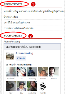 2.คุณสามารถเข้าไปที่แก้ไขแม่แบบแล้วแก้คำว่า YOUR GADGET เป็นข้อความเกี่ยวกับ Facebook ได้