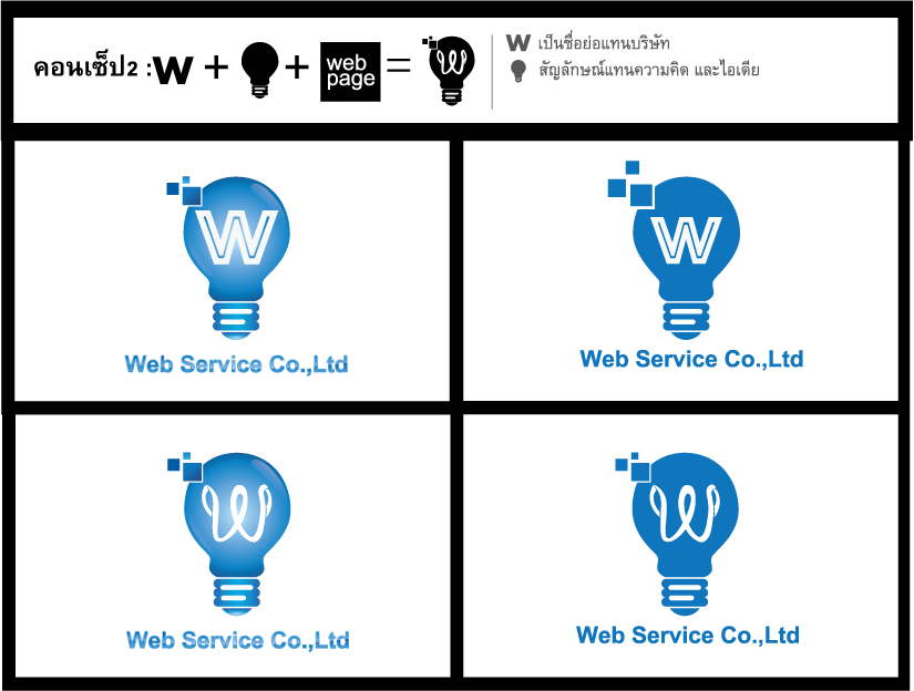 ถือว่าปิดรับไปแล้ว ผมเลยขอเปิดภาพที่ส่งหลังไมค์ครับไปครับ ผมอาศัยแนวคิดเว็ปเซอร์วิน หมายถึงการให้บริการทำเว็ปไซย์ ที่แรกผมลองเอา font ที่คุณชอบมาวางดูแล้วปรากฏมันไม่เข้ากันเท่าไร เลยปรับเปลี่ยน font ใหม่ให้ดูดีมากขึ้น font ตัวนีผมชอบมากมันดูเรียบดีแถมยังมีบุคคลิเป็นตัวของตัวเอง จะสื่อถึงทีมงานสร้างเว็ป ไม่ใช่แค่สร้างอย่าเดียวต้องรวมเอา ศิลป มาผสมกัน ส่วนตัวหุ่นมองว่าคล้ายๆกับขอ google ผมไม่เถี่ยนครับ แต่อยากสือออกมาในรูปที่ว่า เราสามารถสร้างงานได้เท่ากับต่างประเทศครับ ภาพที่ลงเป็นภาพที่ผมลองออกแบบหน้าเว็ปครัีบ ดูว่าเข้ากับ logo ที่ผมออกแบบมารึเปล่า สรุปลงตัวดี ( ใช่เวลาเยอะมาก กับแนวคิด )