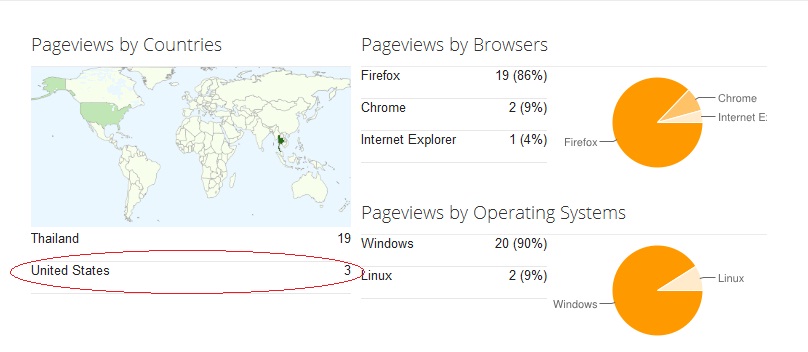 ข้อมูลเพิ่มเติมอีกซักหน่อย... อันนี้คือบล็อกที่ทำเสร็จก่อนหน้า ประมาณ 1 ช้่วโมง...  ทราฟฟิกจากอเมริกาที่ผมวงไว้ คาดว่าคงเป็นทีมงานของBlogger เพื่อตรวจบล็กที่เราสร้างขึ้น... เพราะทุกครั้งเมื่อสร้างเสร็จจะมีทราฟฟิกจากอเมริกาประมาณ 1-3 ภายในชั่วโมงแรกเสมอ...(ยังไม่อินเด็กซ์ ไม่โปรโมท) ส่วนบล็อกที่โดนลบ เพิ่งตั้งชื่อบล็อกเสร็จก็ลบทันทีคงเพราะเป็นคีย์ใกล้เคียงกัน