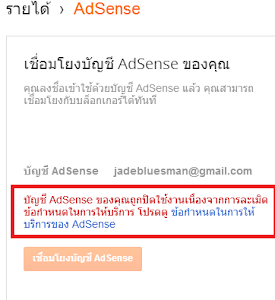 บัญชี AdSense ของคุณถูกปิดใช้งานเนื่องจากการละเมิดข้อกำหนดในการให้บริการ โปรดดู ข้อกำหนดในการให้บริการของ AdSenseผมก็ได้ลองแก้ไขด้วยตัวเองจากกระทู้เพื่อนๆในนี้หลายแบบก็ยังไม่ได้