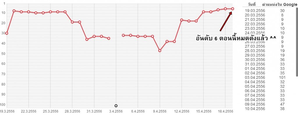 ผลปรากฎวันนี้ผมฟิตอยากทำงาน เลยตรวจ Monitor google พบว่าอันดับมันพุ่งขึ้นมาจาก 30 กว่า ขึ้นมาอันดับ 6 ก็เลยงง ว่าไปทำไรมา