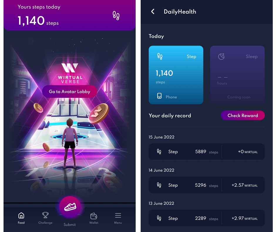 และเราจะได้รับเหรียญ WIRTUAL ในอีก 2 วันถัดไป เช่น ผลการก้าวเดินวันที่ 15 มิ.ย. เหรียญก็จะเข้า Wallet ของเราในวันที่ 17 มิ.ย. ครับ