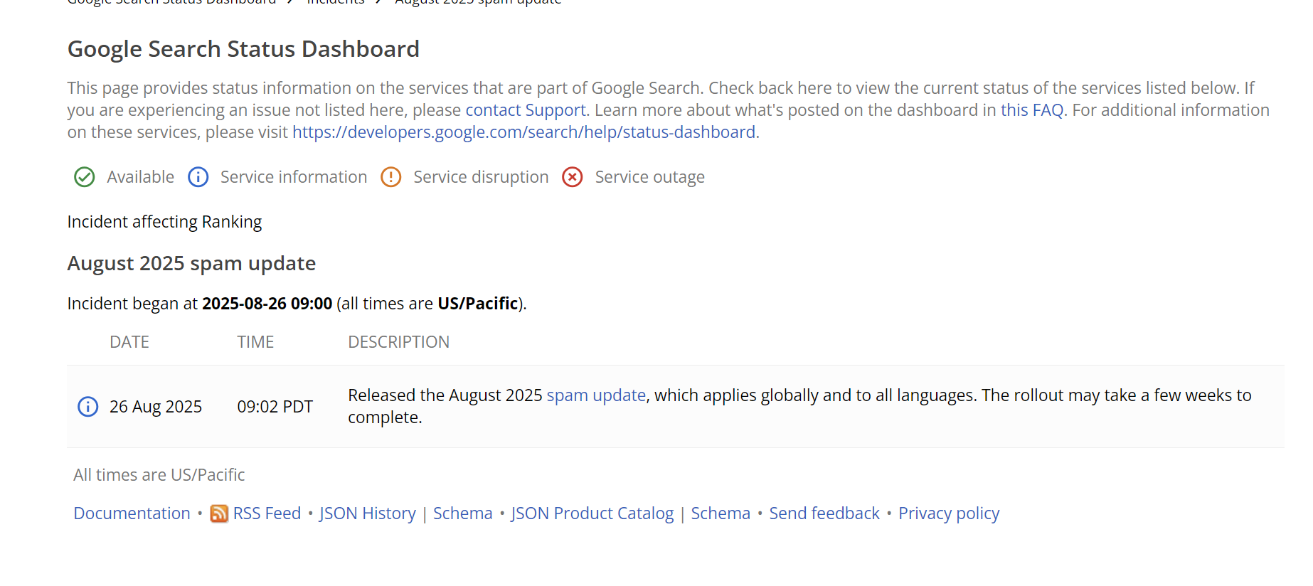 ครั้งก่อน 30 Jun 2025 เป็นcore update ใช้เวลาroll out 16 วัน คราวนี้ spam update แต่ยังเห็นเว็บที่spam backlinkลอยหน้าอยุ่อันดับต้นๆอยู่ ส่วนเว็บผมไม่ได้spam ไม่มีซื้อbacklink วันนี้เหมือนอันดับเริ่มขยับลง รอดูต่อไป