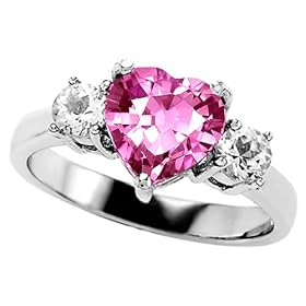 2.60 cts 925 Sterling Silver 14K White Gold Plated Lab Created Heart Shape Pink Sapphire Engagement Ring - gold-plated