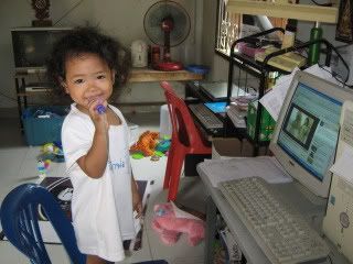 Grin นี่เลยครับโต๊ะทำงานโปรเจค 5 หมื่นบาท/เดือน เก้าอี้ราคา 79 บาทนั่งแล้วปวดหลังสุดๆ  แต่ตัวที่อยู่บนเก้าอี้ประเมินค่าไม่ได้ ชอบมาแย่งคอมพ่อ ร้องคาราโอเกะ