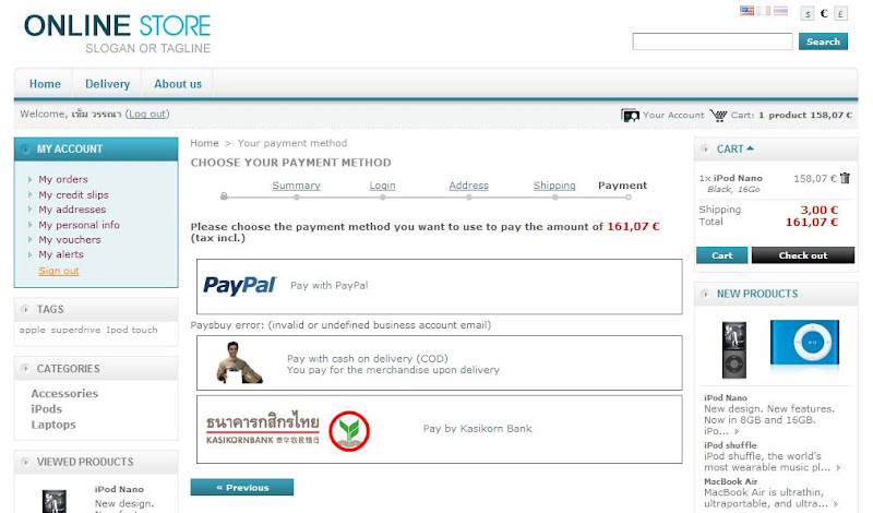 ตอน ขั้นตอนสุดท้าย ที่ Payment พอผมกดที่ปุ่มกสิกร หรือ ปุ่ม COD