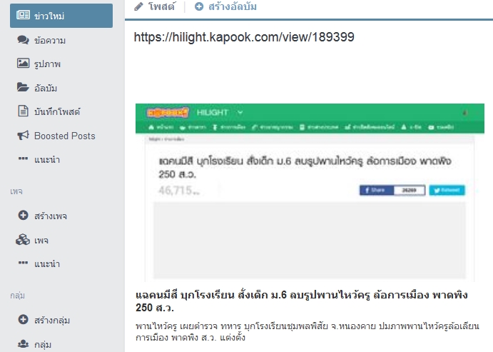 เนื่องจาก ตอนนี้ ผมเป็นแอดมินเพจหนึ่งของ Facebook ที่มีสมาชิกมากกว่า 5 หมื่นคน และการโพสต์เพจผมอาศัยแชร์ลิงห์เป็นหลัก จากเวปไซต์ที่ผมทำขึ้นมาเอง เพราะเน้นด้านข่าวสารของจังหวัดตนเองครับ